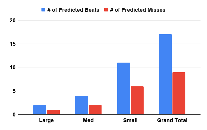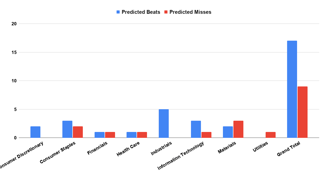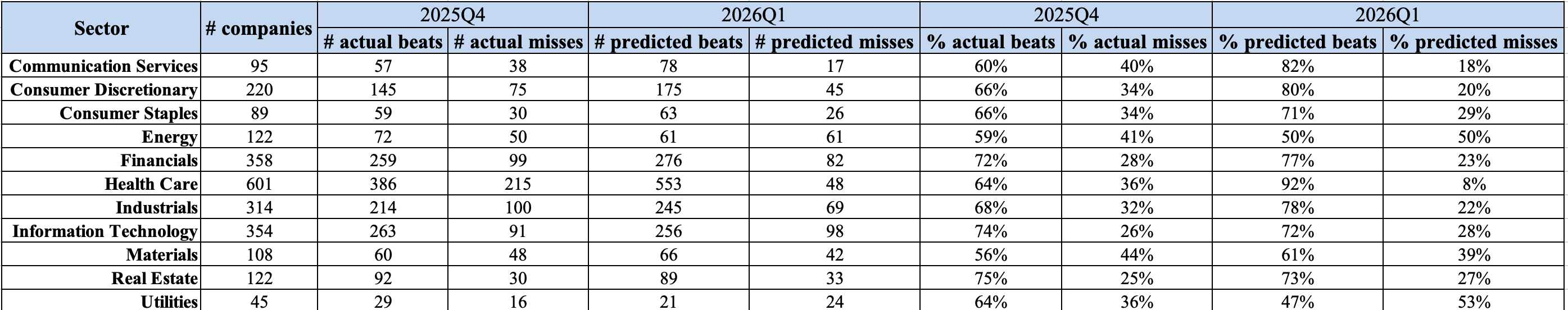 Health Care: 761 predicted beats / 88 predicted misses (90% beats)
